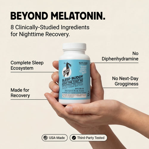 The complete 24-hour cortisol protocol. Zen Warriors stabilises your stress response through the day. Sleep Buddy secures the deep biological recovery where performance is actually built — while you rest.